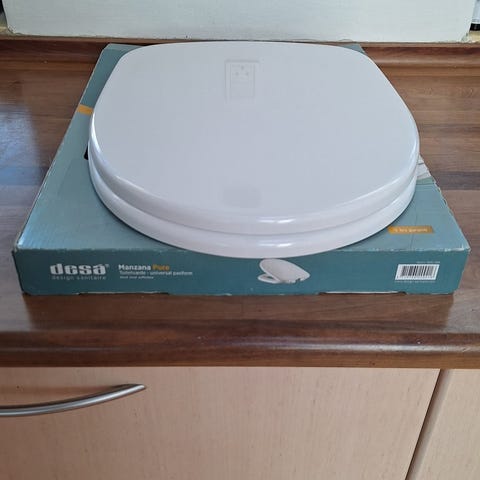 Helt nyt toiletsæde fra Desa – Almond Pure model. Aldrig brugt – kun åbnet emballage.