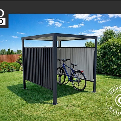 Solidt skur til forskellige køretøjer, herunder cykler, knallerter, scootere, motorcykler og andre genstande som barnevogne, havemaskiner eller affaldsbeholdere. Den robuste konstruktion beskytter køretøjerne og andet mod regn og for meget sol. Du kan også bruge overdækningen til tørring af tøj ved at opsætte en tørresnor. Konstruktionen kan placeres næsten overalt. Ekspansionsbolte til fastgørelse medfølger.