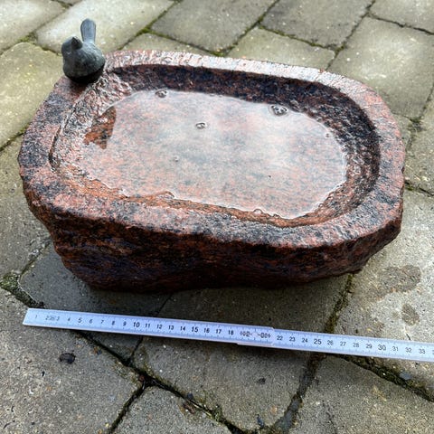 Fuglebad i sten med sokkel – rundt, Ø35 cm, vejrbestandigt, nyt