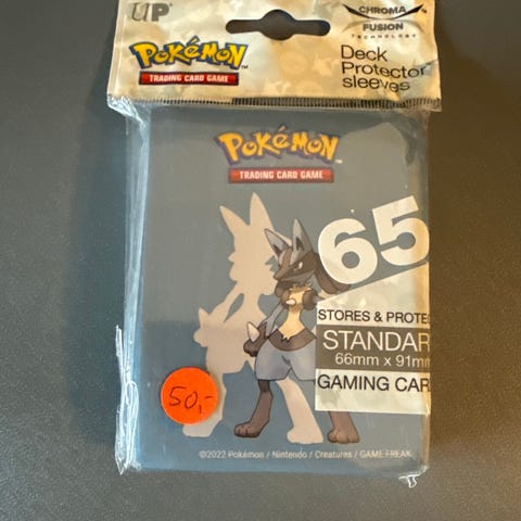Pokémon deck protector sleeves i standard size til samlekort. Æskens indhold er 65 kortlommer i størrelsen 60 x 91 mm. Forsiden har gult Pikachu-motiv. Sleeves er beregnet til beskyttelse af standardstørrelse kort, f.eks. Pokémon-kort, mod slid og snavs.