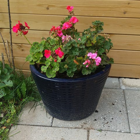 Sæt med fire keramik krukker i blågrå farve. Krukkerne har hank i siderne og håndmalet blå dekoration på ydersiden. Velegnet som plantekrukker eller opbevaringskrukker i have, altan eller indendørs. Forskellige størrelser i samme design giver mulighed for samlet brug eller hver for sig.