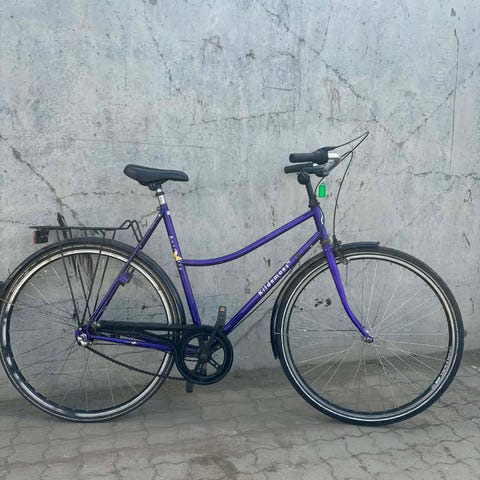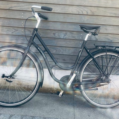 Kildemoes Colibrie 5 gear, passer til 165-170 cm højde. Den har en lille cykelcomputer og cykelkurv..