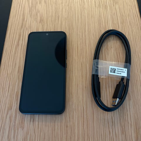 Mobilen er kun brugt midlertidigt i kort periode. Ny panzerglas er monteret og med cover på. Oplader følger selvfølgelig med.
