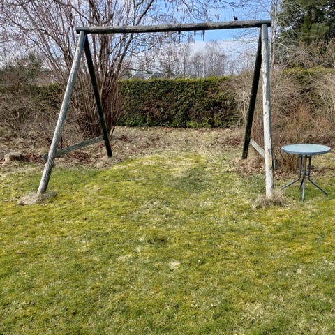 Gynge stativer i træ med to gynger blå