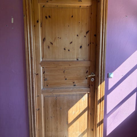 Fyldingsdøre af massivt fyrretræ.