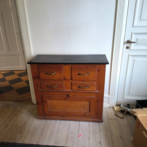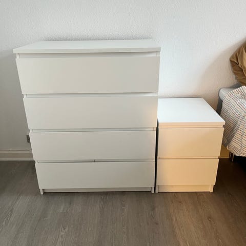 De gives gratis væk men skal hentes samlet:) der er 2 kommoder og 2 natborde. På den ene kommode sidder fronten en smule løst men det kan laves ret nemt☺️