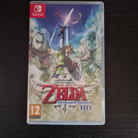 Nintendo The Legend of Zelda Skyward Sword HD spil til Nintendo Switch. Fysisk udgave på spilkort med PEGI 12-års aldersmærkning. Action-adventure spil i The Legend of Zelda-serien, hvor spilleren styrer Link i et fantasy-univers. Understøtter bevægelseskontrol med Joy-Con samt traditionel knapstyring, som angivet på omslaget. Leveres i originalt Switch-plastcover med omslagsillustration.