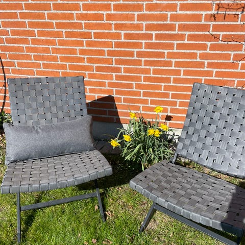 Træet er lidt afskallet i overfladen, men har hos mig stået på overdækket altan i en håndfuld år og er virkelig god kvalitet. Man sidder dejligt og tilbagelænet i dem. De kan klappes sammen, så de ikke fylder meget.