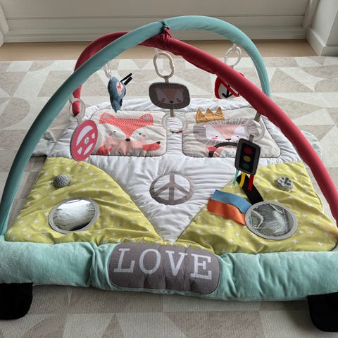 Aktiviteter, der er placeret foran babyen, hjælper med at holde babyen underholdt, selv når den leger på maven.