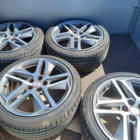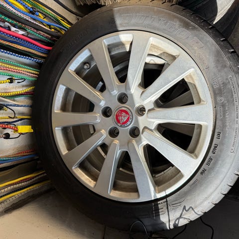 Jaguar originale alu fælge på Continental dæk fra 2020. Står med ca 6 mm mønster . Små kant kys på 1 af fælgerne men ikke dybe eller noget der har betydning.