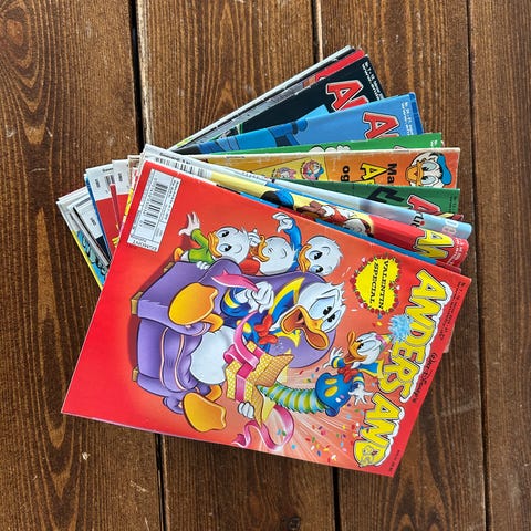 Anders And tegneserieblade samling. Blandede hæfter med forskellige årgange og forsider med klassiske Disney-figurer. Egnet til læsning, samling eller som supplement til eksisterende Anders And-samlinger.
