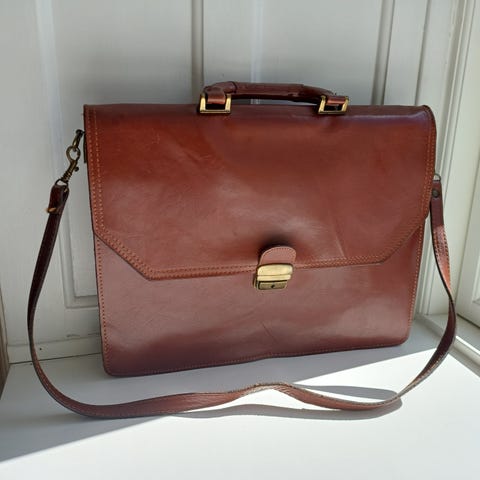 Brun lædertaske, lidt slidt. 36x26 cm