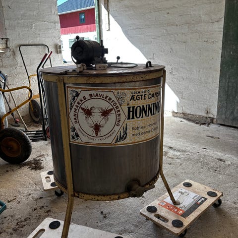 Rustfri honningslynge med elektrisk motor. Slyngen er udført i rustfrit stål med trådkurv til tavler og delvist lukket låg. Egnet til slyngning af honningrammer i biavl. Står på ben og kan placeres på palle eller fast underlag.