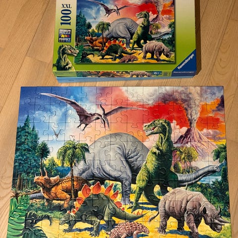 Dinosaur Puzzle puslespil med motiv af dinosaurer. Puslespillet består af 500 brikker og har færdig mål på ca. 48,3 x 35,5 cm (19" x 14").
