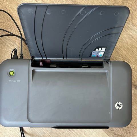 HP Deskjet 3050 multifunktionsprinter i sort. Enheden kombinerer printer, scanner og kopimaskine i én. Betjeningspanelet har display og knapper til blandt andet scan, trådløs funktion og hurtigformularer. Papir føres ind fra toppen, og scanneren har låg med glasplade i A4-størrelse. Velegnet til almindelige print- og scanningsopgaver i hjemmet eller på et lille kontor.
