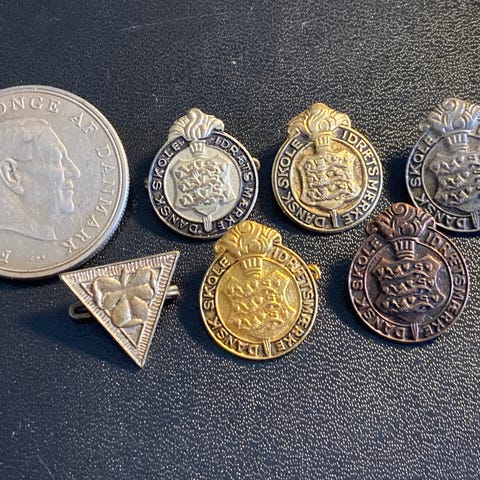 Sælger et stort engros‑parti på ca. 490 originale emblempins fra det danske Kongens Artilleriregiment (KAR).