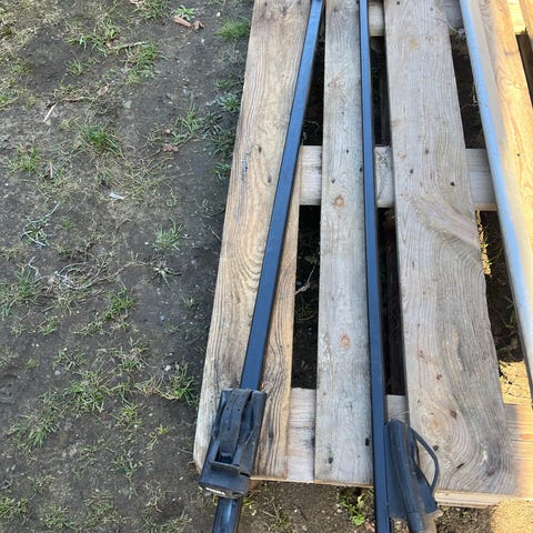 To på 135 cm & en på 130 cm, de passer på tag op til ca. 130/135 cm, de kan justeres kortere.