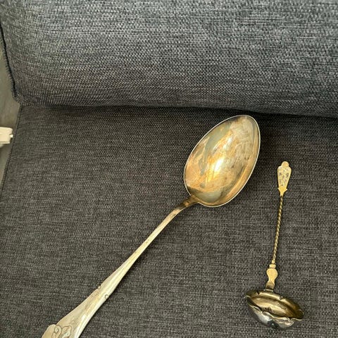 FIN SØLVSKE (PLET) MED FORGYLDT SKÅL ,STRØSKE I PLET !
