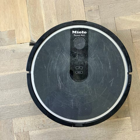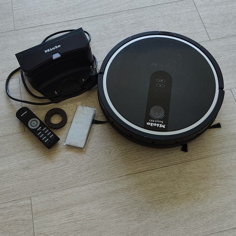 Miele robotstøvsuger i sort/rød med medfølgende fjernbetjening og ladestation. Velegnet til automatisk støvsugning af gulve i hjemmet. Robotstøvsugeren kan køre selvstændigt og vender tilbage til ladestationen for opladning. Egnet til brug på hårde gulve og tæpper afhængigt af indstillinger og børstetype. Strømforsyning via medfølgende oplader.