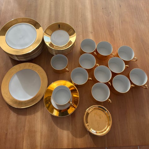 Fint kaffestel til 8 personer med fad, sukker og fløde