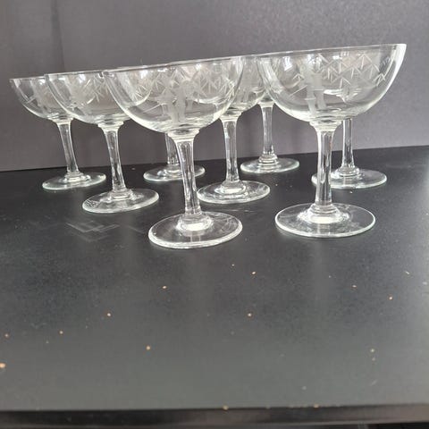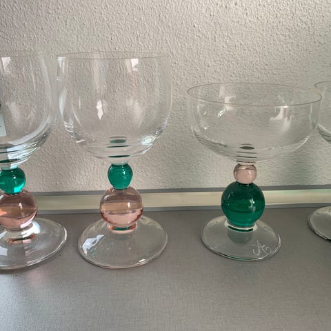 14 stk. krystal-hvidvinsglas og 3 stk. krystal hvidvinskarafler - samme mærke som glassene ( husker ikke navn på glas og karafler.