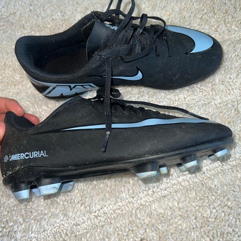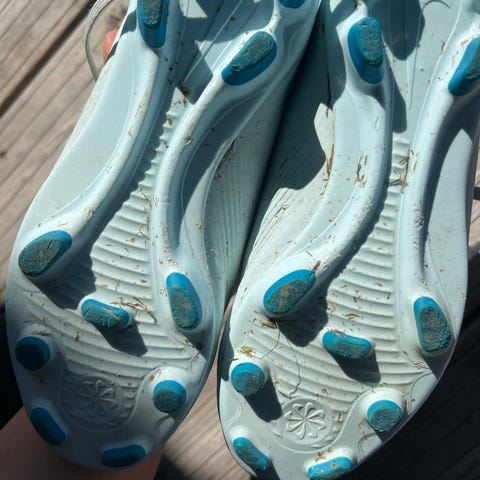 Adidas fodboldstøvler i størrelse 35. Støvlerne er flerfarvede med blå, gule og pink detaljer samt snørelukning. Ydersålen har faste knopper, der er velegnede til fodbold på græsbaner. Overdelen er i syntetisk materiale, som er let at rengøre efter brug på banen. Købt i 2026