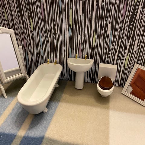 Lundby dukkehus badeværelsessæt med badekar, toilet og vaskemøbel