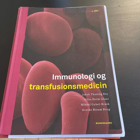 Immunologi og transfusionsmedicin, Ellen Taaning, Astrid Nørgaard, Gitte Holm Glaas, år 2010, 3 udgave, Bogen er i rigtig fin stand. Byd gerne :)
