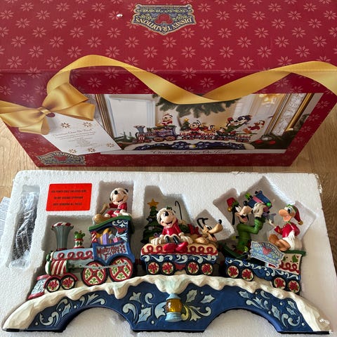 Stor mekanisk Walt Disney spilledåse med lys, dans og musik fra 80’erne (Mickeys cirkus) mens musikken spiller danser Mickey og Minnie rundt mens Pluto kører ind og ud af kanonen (der er lys i ca halvdelen af pærerne) flot stand H28cm x B24cm og dybde 21cm mp 700kr afhentes i 8570 Trustrup eller sendes for 54kr