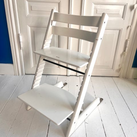 Stokke trip trap stol i lys brun? Mørk beige?