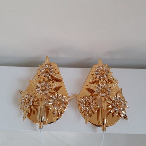 Tysk Retro familie af lamper i messing og hvidt glas.