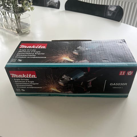 Jeg sælger min makita vinkelsliber som jeg ikke bruger. Maskinen er fra december 2023, brugt og med lidt naturlige brugsspor, men ellers flot og velholdt - kører som en ny maskine !