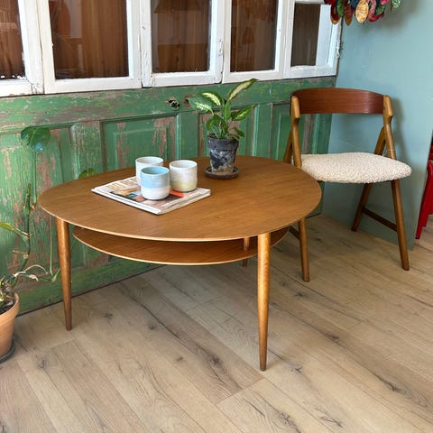 Flot retrostand, der er boret et hul i centrum af bordpladen