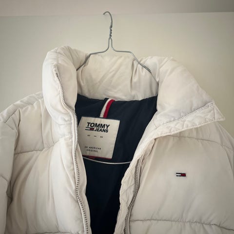 Tommy Hilfiger jakke til kvinder i størrelse S. Jakken er fremstillet i polyester og har en blank, vatteret overflade. Farven er blå. Modellen har hætte, gennemgående lynlås foran samt sidelommer. På ærmet ses et rundt Tommy Hilfiger-logo. Velegnet som udendørsjakke i køligere vejr.