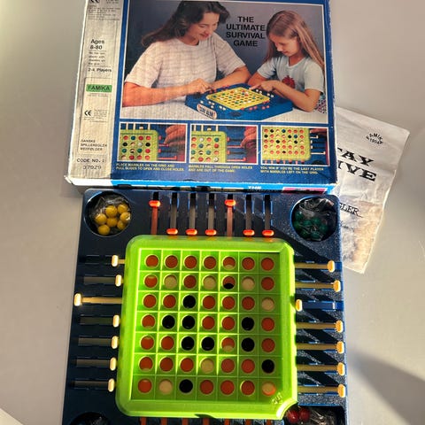Skader på brætspil. Spillet består af spilleplade, plastbakke med fuglefigurer og små træklodser som spilledele. Brætspillet er egnet til børn og kan spilles af flere deltagere, hvor man flytter fuglefigurerne og samler klodser efter spillets regler.