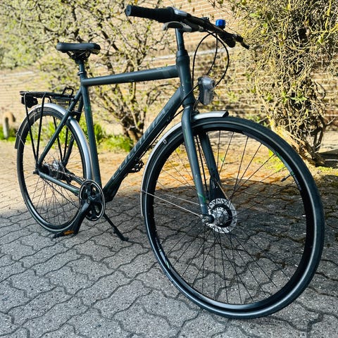 Cyklen har lige fået service og blev justeret og ordnet grundigt og i den forbindelse har den fået en ny forsikringsgodkendt lås og 2 sæt nye bremseklodser.