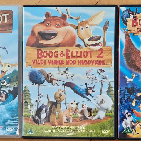 Boog & Elliot dvd film samling med tre film. Indeholder Boog & Elliot 1, Boog & Elliot 2: Vilde venner mod menneskene og Boog & Elliot 3: Cirkus venner. Animerede familiefilm på dvd, egnet til børn og hele familien. Velegnet til afspilning på standard dvd-afspillere, computere med dvd-drev eller konsoller, der understøtter dvd-format.