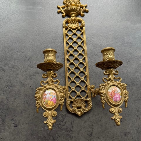 Den fineste væg lysestage i rokoko inspireret stil. Der kan sættes et spejl eller et billede i.