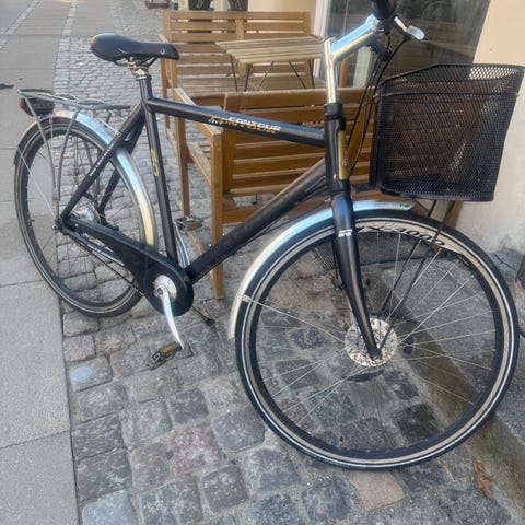 selling a bicycle recently fixed - new brakes, oiled up and new basket installed, for 1500 DKK.