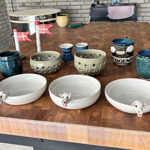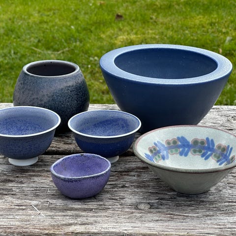 Aage Vest keramik sæt skål og krus blå glasur