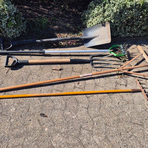 Blandet parti have- og garageudstyr. På billederne ses bl.a. løvblæser med opsamlingspose, hækkeklipper, håndsav, flere grønne benzindunke samt en olie-sugepumpe i original emballage. Derudover ses diverse mindre redskaber og tilbehør til have- og garagearbejde. Egnede til generelle vedligeholdelsesopgaver i have, indkørsel og garage. Sælges samlet som vist på billederne.