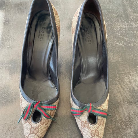 Smukke Gucci sandaler med kilehæl i kork og med guldkant. Str 39 - er almindelig i str.