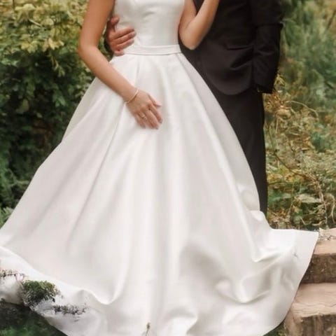Jeg sælger den, fordi jeg er blevet gravid, og der derfor kommer til at gå et par år, før vi skal holde bryllup. Derfor ønsker jeg, at kjolen i stedet kommer videre til en anden, som kan få glæde af den 🤍