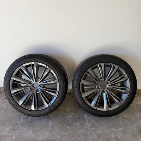 Jeg sælger mine 18” CMS Alufælge med sommerdæk på. De har siddet på min tidligere Passat B8. Der er lidt over 4mm mønster tilbage på alle dæk.