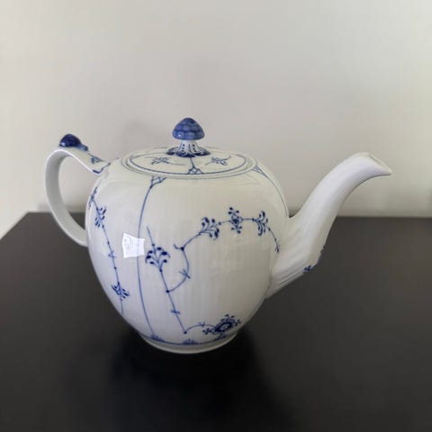 Royal Copenhagen Kjøbenhavn tepotte hvid blå porcelæn