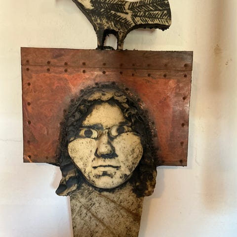 Krucifiks af kunstneren Niels Helledie. Givet som gave af kunstneren til mine forældre.