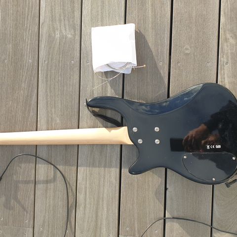 Misti elektrisk guitar i sort finish med lys slagplade. Guitaren har tre single-coil pickupper, volumen- og tonekontroller samt 5-vejs pickupvælger. Udstyret med tremolo-bro og standard stemmeskruer. Hals i træ med gribebræt i mørkt træ og dot-inlays. Kroppen har bagplade over tremolofjedre. Egnet til elguitarspil i forskellige genrer.