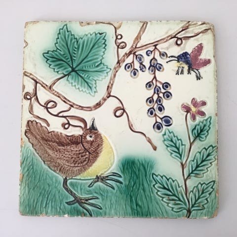 Aluminia keramisk flise med fuglemotiv hvid flerfarvet