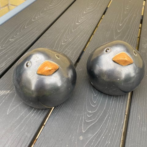 Stor gammel høne i papmache H. 60 cm L. 50 cm ☀️ købt i Frankrig på antikmarked for 30 år siden samt et havepynt-lot sælges samlet for 500kr