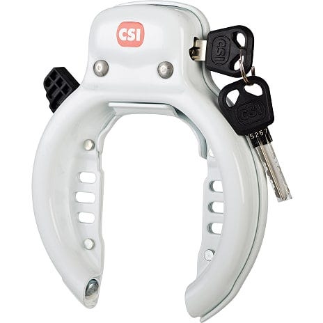Denne forsikringsgodkendte ringlås fra CSI er en sikker og praktisk løsning til at beskytte din cykel mod tyveri. Låsen monteres på cyklens bagstel og er nem at anvende.